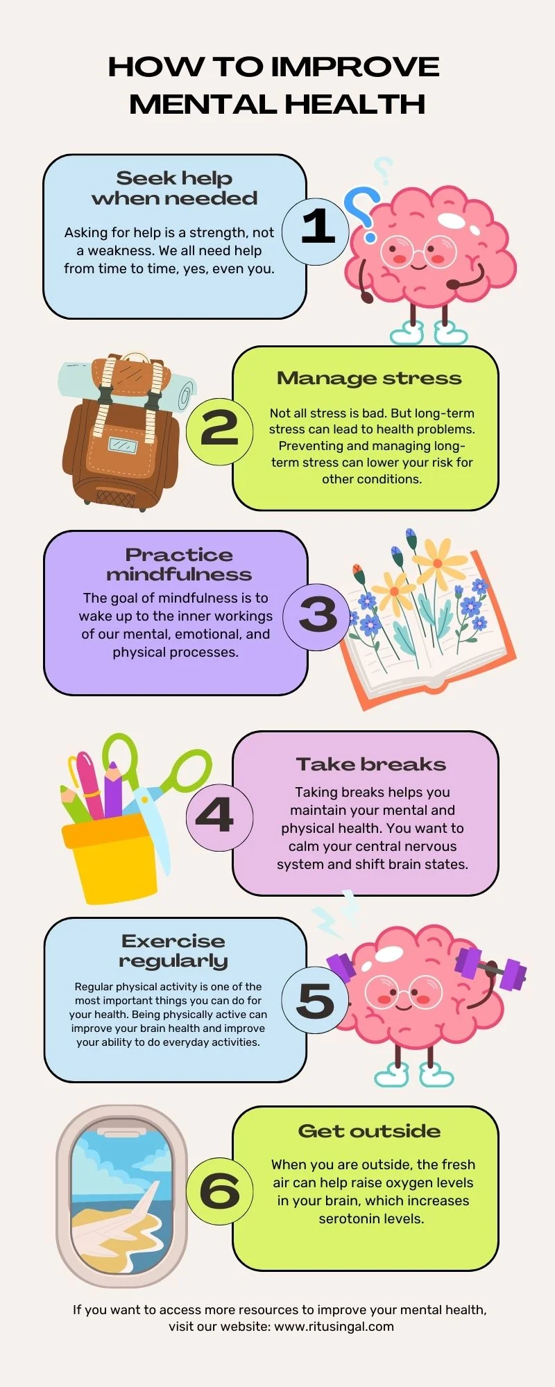 Self-awareness and a positive attitude help in improving mental health. Mental counselling is required in every walk of life from sports, schools and colleges to business houses and even extent to small children and housewives not leaving the elderly behind. Here are some tips to help-